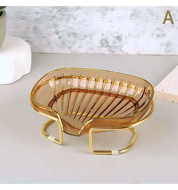 Saboneteira de Acrilico c/ Suporte em Metal Dourado - Âmbar