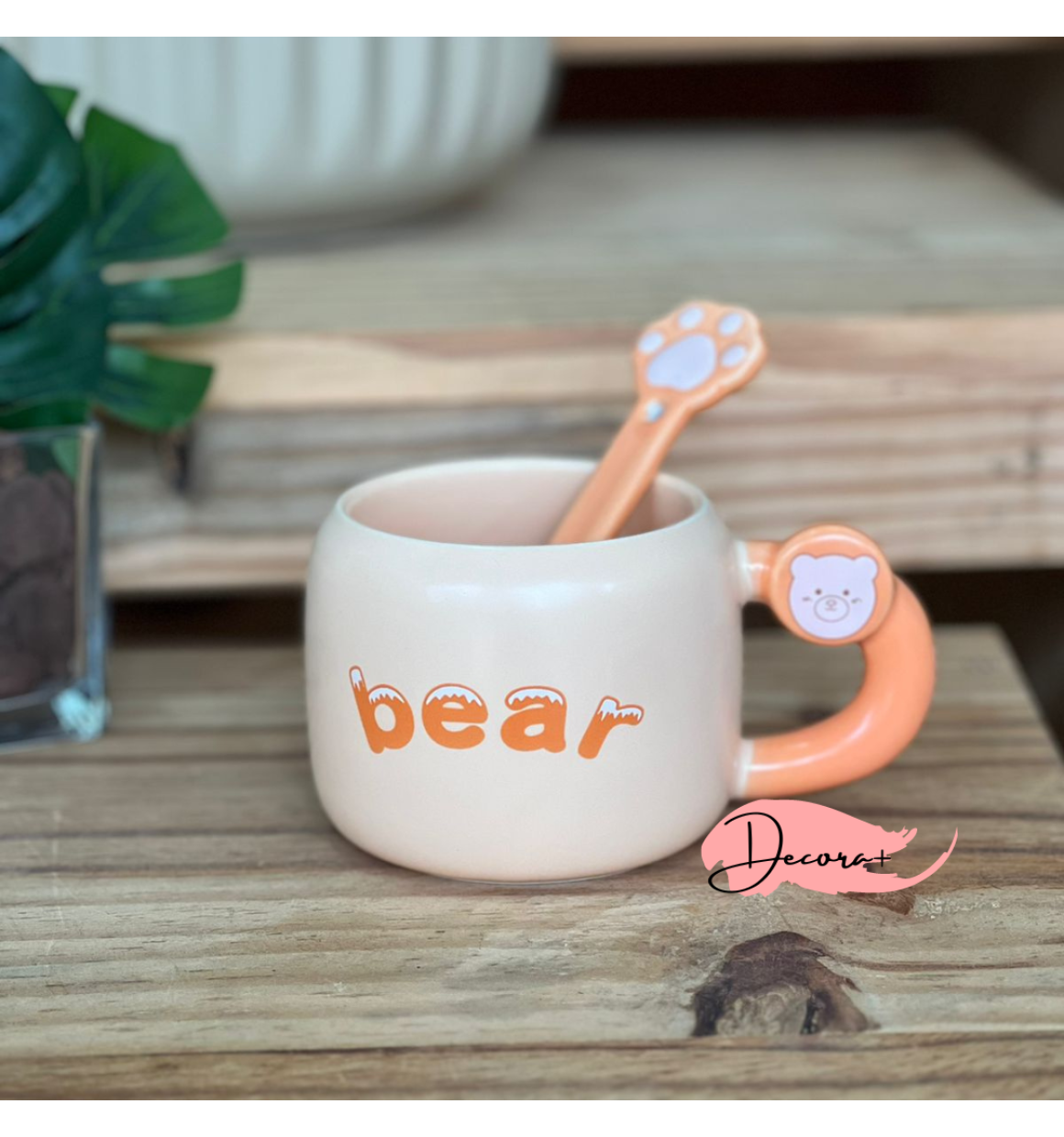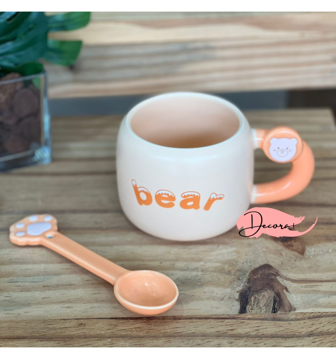 A Caneca de Cerâmica com Colher, decorada com um simpático ursinho ("bear"), é perfeita para seus momentos de descontração. Com capacidade para 400ml, ela combina charme e praticidade.