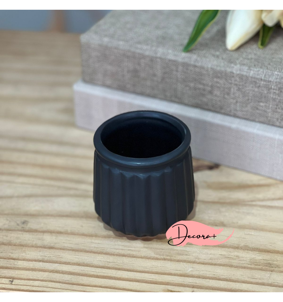 Vaso Canelado de Cerâmica Preto (PQ)- 7,5cm X 7,5cm