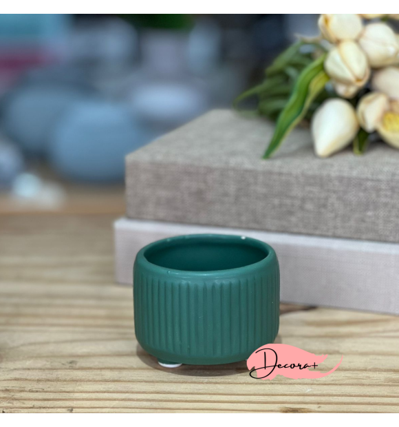 Vaso Canelado de Cerâmica Verde (Pq) - 6cm X 8cm
