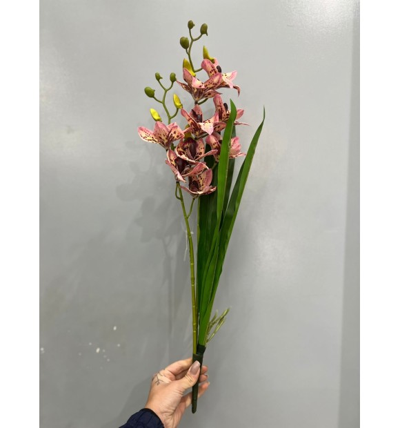 Para uma decoração cheia de vida e cor, aposte na orquídea rosa com folhagem artificial! Delicada, vibrante e super fácil de manter sem precisar se preocupar com cuidados!, ela traz toda a elegância das flores naturais para dentro de casa, sem complicações.