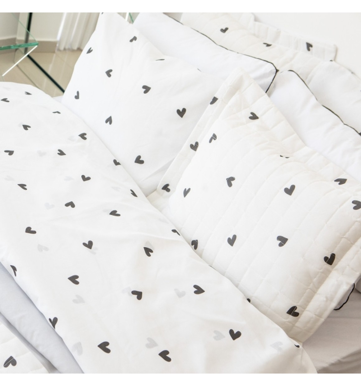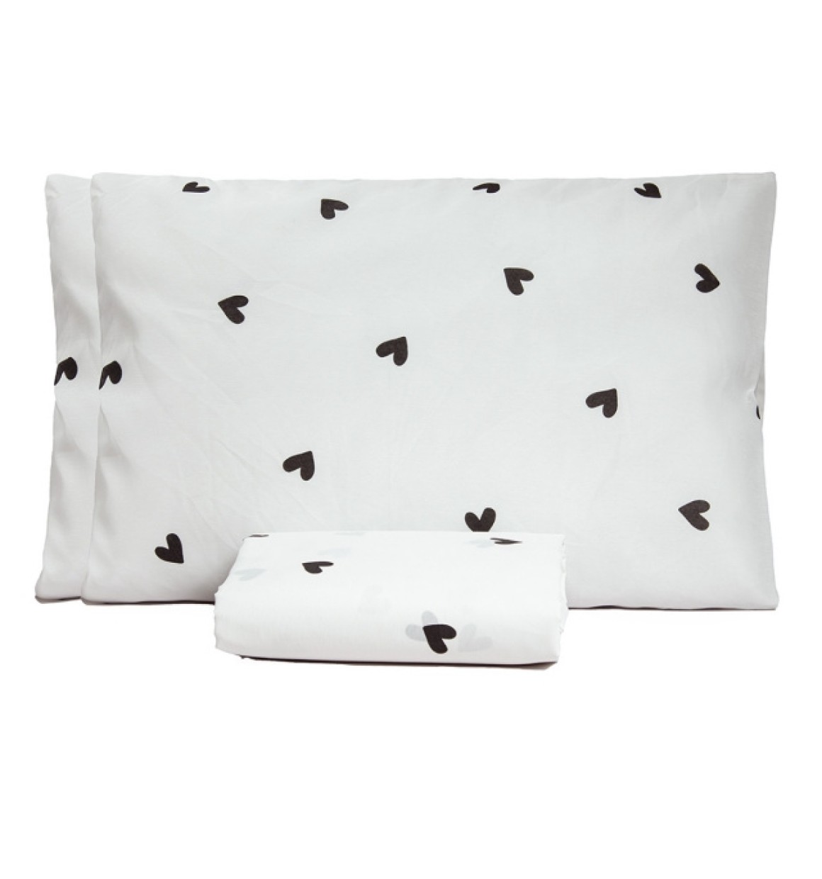 Jogo de Cama Essencialle 150 Fios Corações Preto e Branco Queen 3 Peças