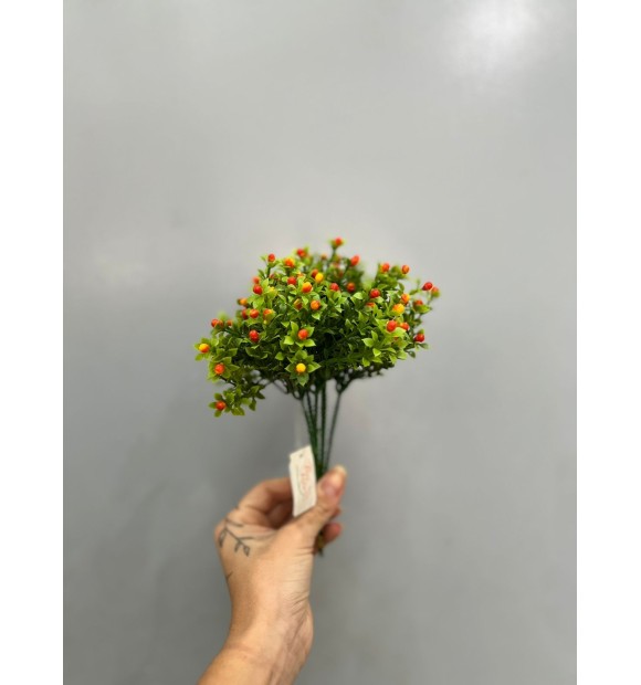 Com suas folhagens verdes e frutinhos Laranjas vibrantes, o Pick Verde Frutinhos Laranja - 25cm (Artificial) é a escolha perfeita para quem quer uma decoração leve e cheia de vida.