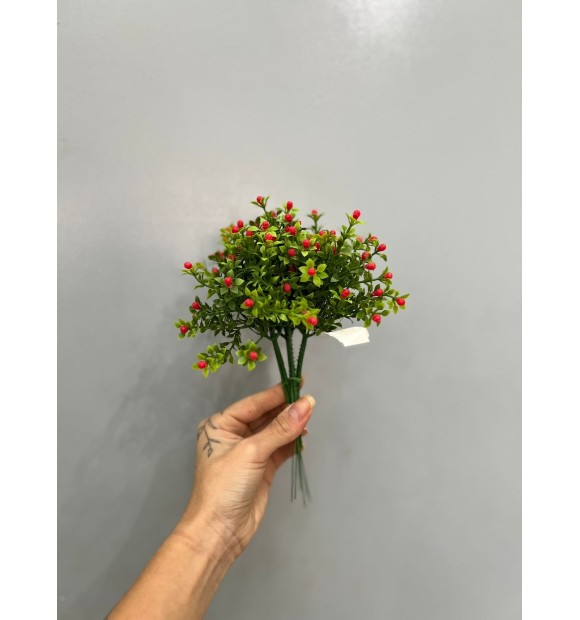 Com suas folhagens verdes e frutinhos vermelhos vibrantes, o Pick Verde Frutinhos Vermelho - 25cm (Artificial) é a escolha perfeita para quem quer uma decoração leve e cheia de vida.
