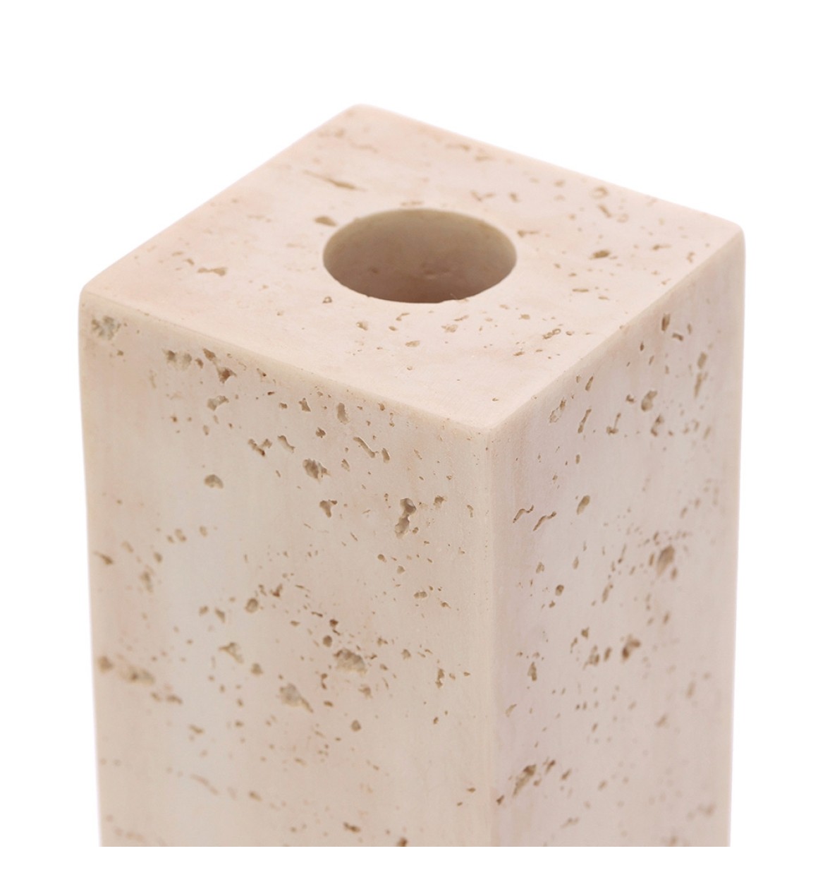 Este Vaso Tubo Quadrado de Poliresina imita o charme do mármore travertino romano, oferecendo uma peça sofisticada e atemporal para qualquer ambiente. Seja para plantas naturais ou artificiais, ele traz elegância e destaque para a decoração.