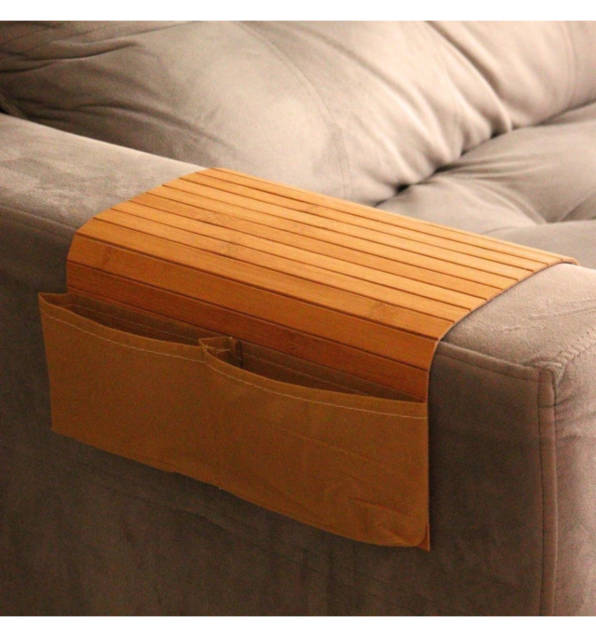 Conforto e praticidade no seu sofá! A Esteira de Bambu com Suporte para Sofá é ideal para apoiar copos, pratos ou até mesmo o notebook enquanto você relaxa. Compacta e funcional, com 40cm X 29cm X 1cm, ela se adapta ao braço do sofá, tornando seus momentos de lazer ainda mais práticos.