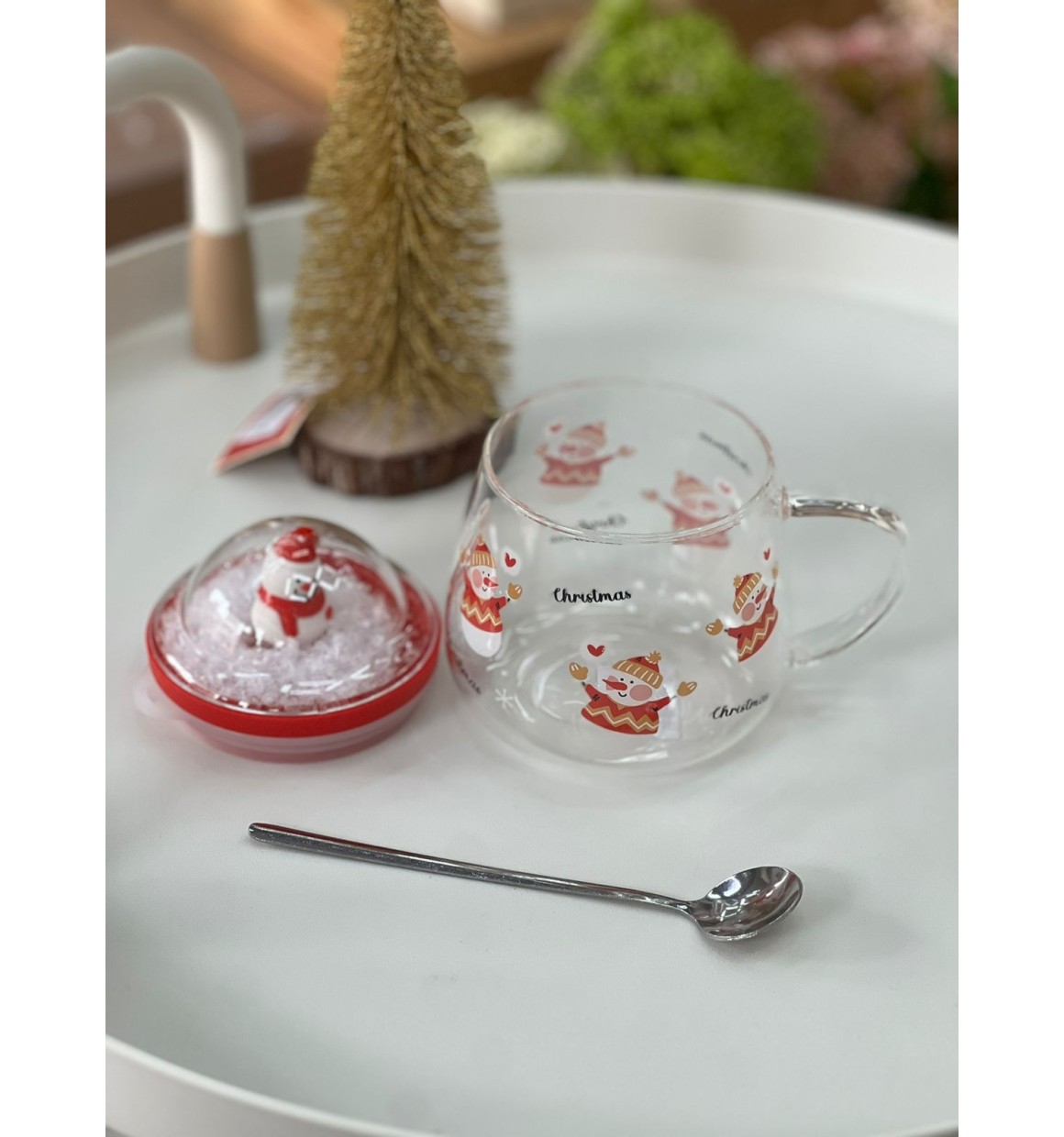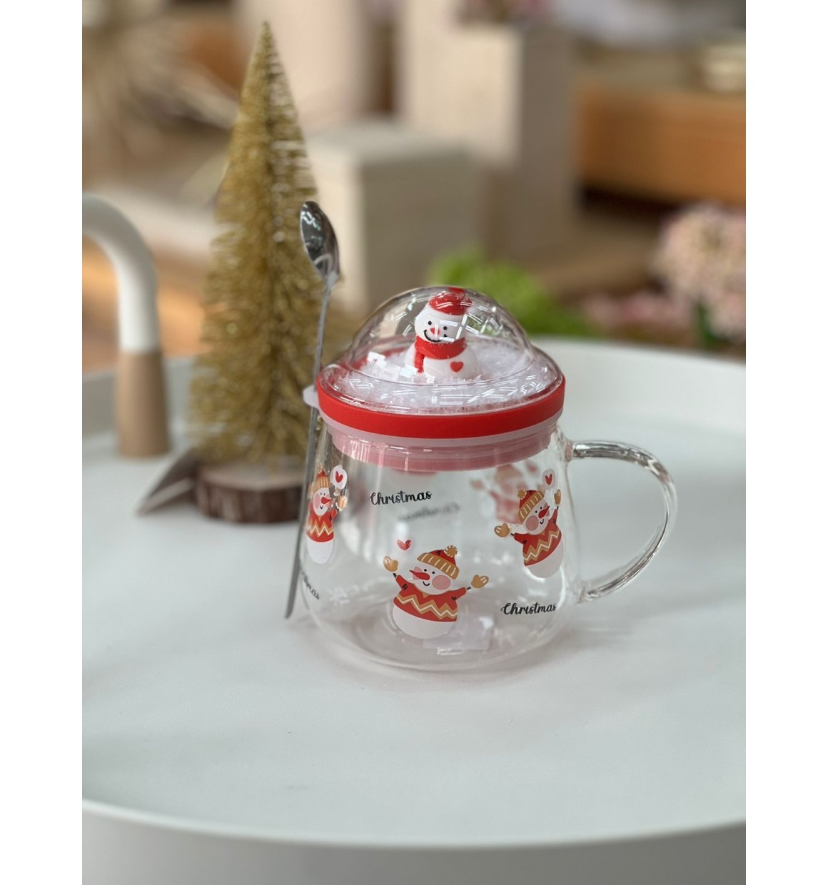 Entre no clima natalino com a Caneca de Vidro Natalina de 400ml! Com estampa de Boneco de Neve, tampa decorativa e anel de vedação, ela mantém sua bebida fresquinha e cheia de estilo. E o toque final? Uma charmosa colher de metal que acompanha a caneca, perfeita para mexer seu chocolate quente ou café!