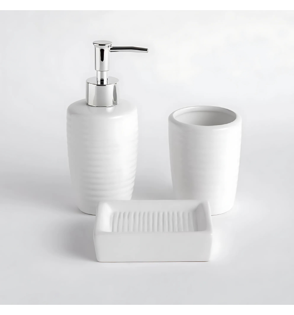 Kit Banheiro de Cerâmica Aroma 3 Peças - Branco