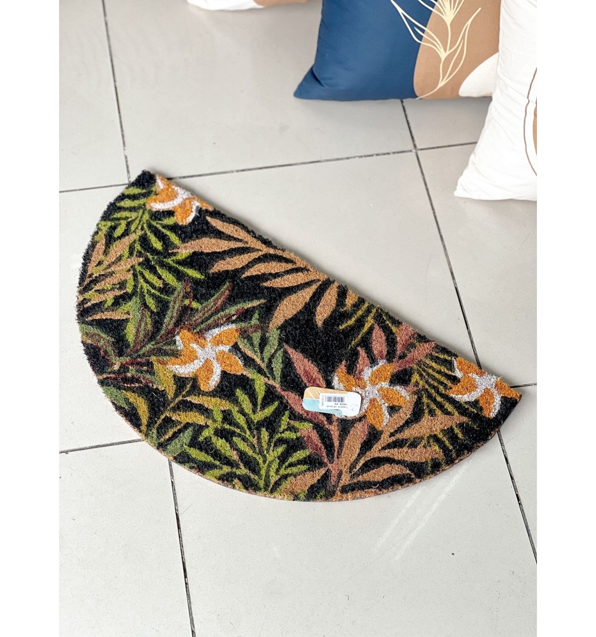 2. Tapete Capacho em Fibra de Côco Meia Lua - Floral 33cm X 60cm