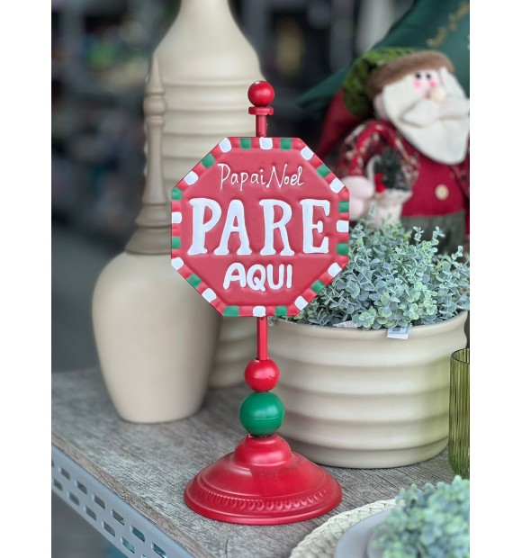 A placa "Pare Aqui" é perfeita para decorar o jardim e entrar no clima natalino. Feita de metal resistente, ela traz um charme especial e um recado direto para o Papai Noel!