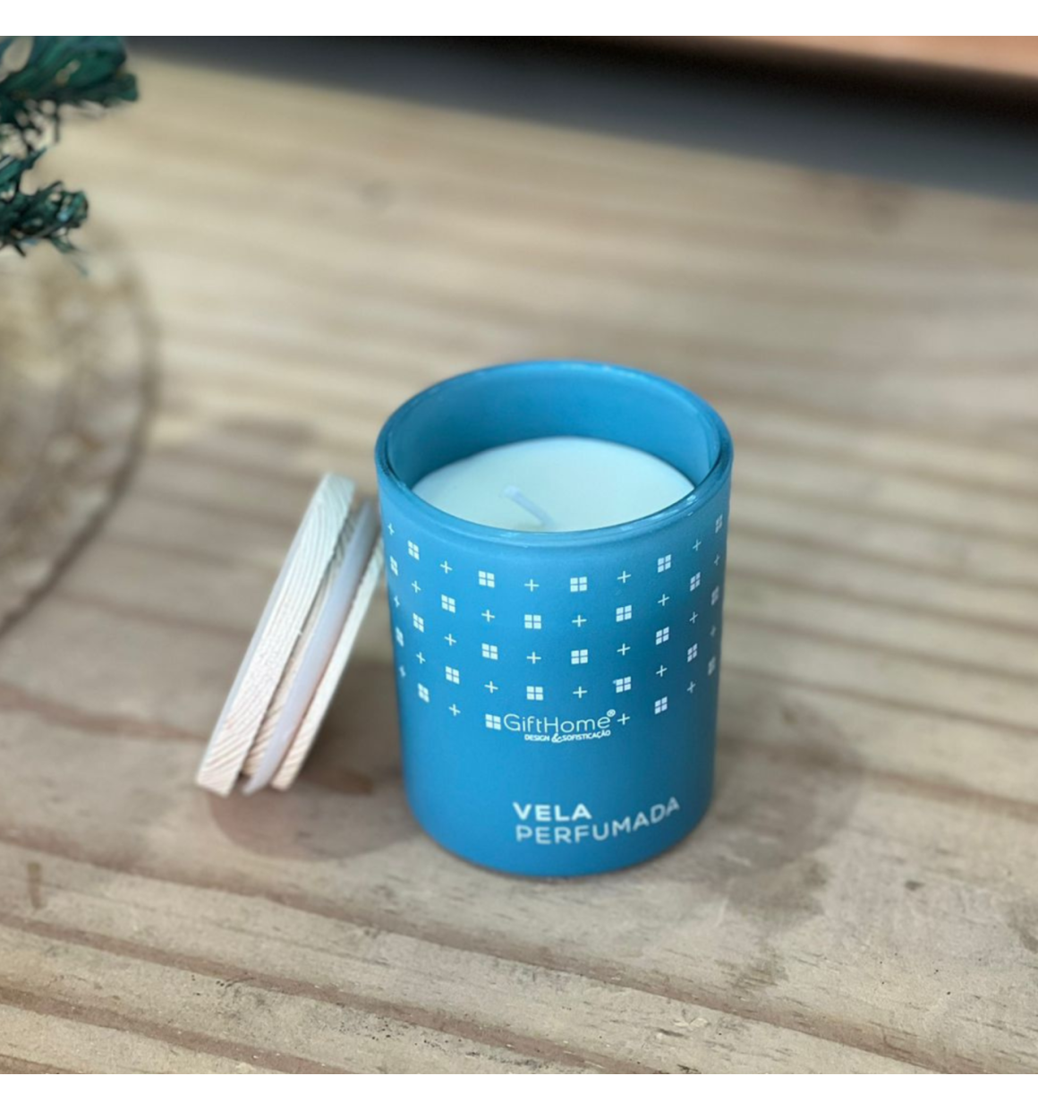 Vela Perfumada Lichia e Chá Branco Azul Claro