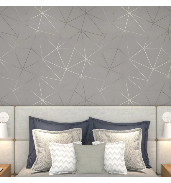 Papel de Parede Autoadesivo Zara Cinza c/ Prata - 5m X 45cm