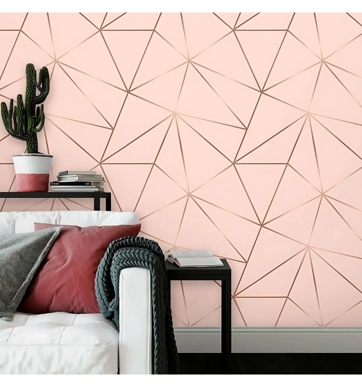 Papel de Parede Autoadesivo Zara Rosa c/ Dourado - 5m X 45cm