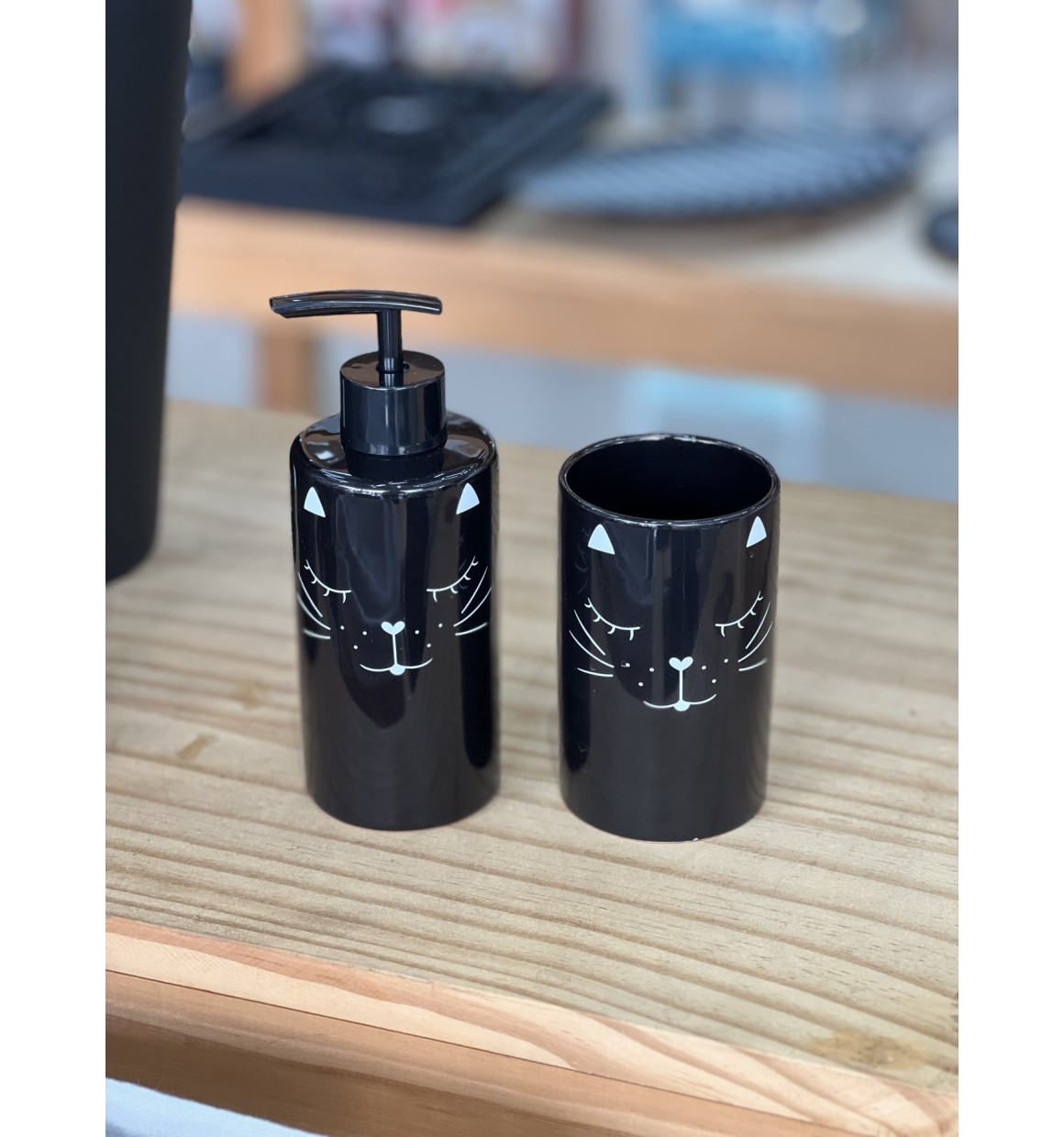 Kit de Banheiro Gatinho Preto de Porcelana - 2 Peças