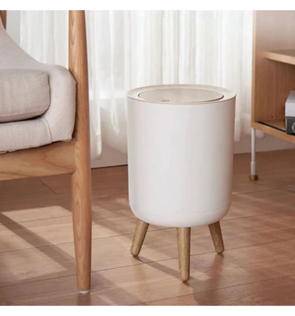 Uma peça prática com apelo estético! Esta lixeira une o charme retrô ao design moderno e minimalista. Com estrutura em plástico resistente de alta qualidade, acabamento branco fosco, tampa com textura imitando madeira natural e detalhes que valorizam o ambiente.